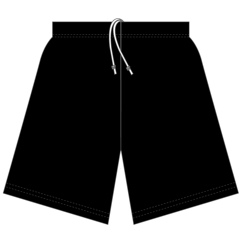 Cotton jersey unisex shorts featuring elastic waist with drawstring cord and two side seam pockets.