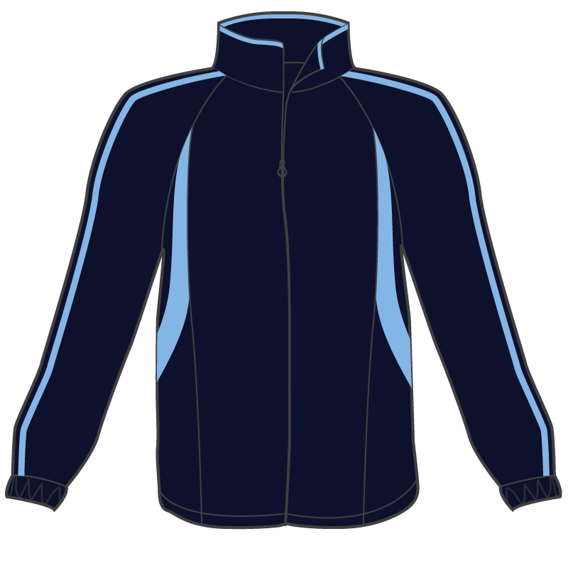Microfibre track jacket with jersey lining. Junior size range children's sizes 4-14.