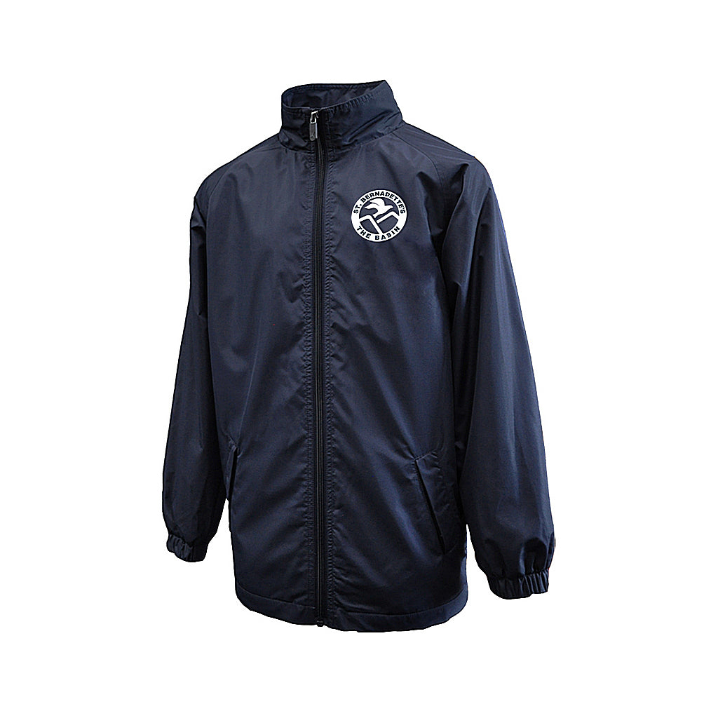 摇粒绒衬里防雨夹克,正面有两个口袋,衣领处有隐藏式兜帽。