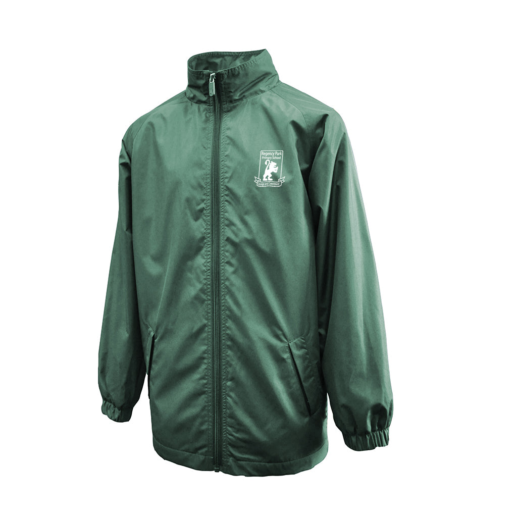 摇粒绒衬里防雨夹克,正面有两个口袋,衣领处有隐藏式兜帽。